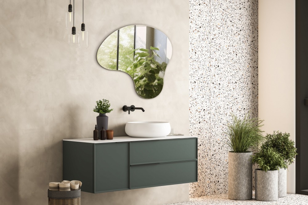 Jeśli zależy nam na odważnym efekcie, lustro do łazienki może mieć również nietypowy kształt - np. asymetryczny, organiczny, co może nadać przestrzeni wyjątkowego i designerskiego wyrazu.
